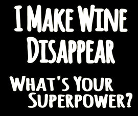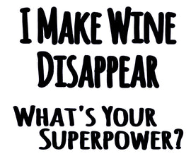 YOUR LIFE, YOUR STATEMENT: I Make Wine Disappear What's Your Superpower? - 5.2" x 4.4" removable sticker. Available in black or white. Original designs...