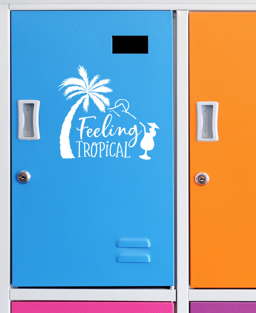 YOUR LIFE, YOUR STATEMENT: Feeling Tropical - 5.2" x 4.8" removable sticker. Available in black or white. This Vinyl Sticker can be uses as a Decal for Laptop, Decal for car, Decal for Small Wall Decoration, Decal for Home Decoration, Decal for Books and Inspirational Quotes. You can also use it as a gift for Outdoor lovers, Nature Lovers or Water lovers. Original designs created by Simply Remarkable - Works of Art Straight from Your Heart, so you can make a statement…!
