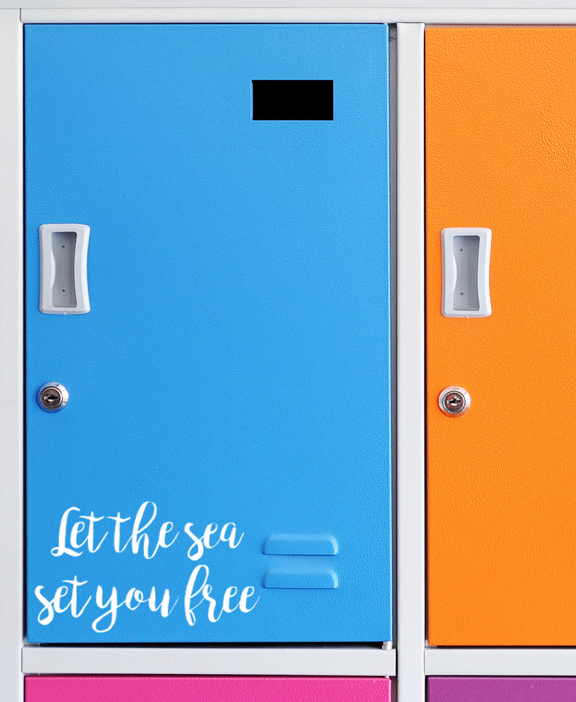 Let The Sea Set You Free | 7" x 4" Vinyl Sticker | Peel and Stick Inspirational Motivational Quotes Stickers Gift | Decal for Outdoors/Nature Water Lovers